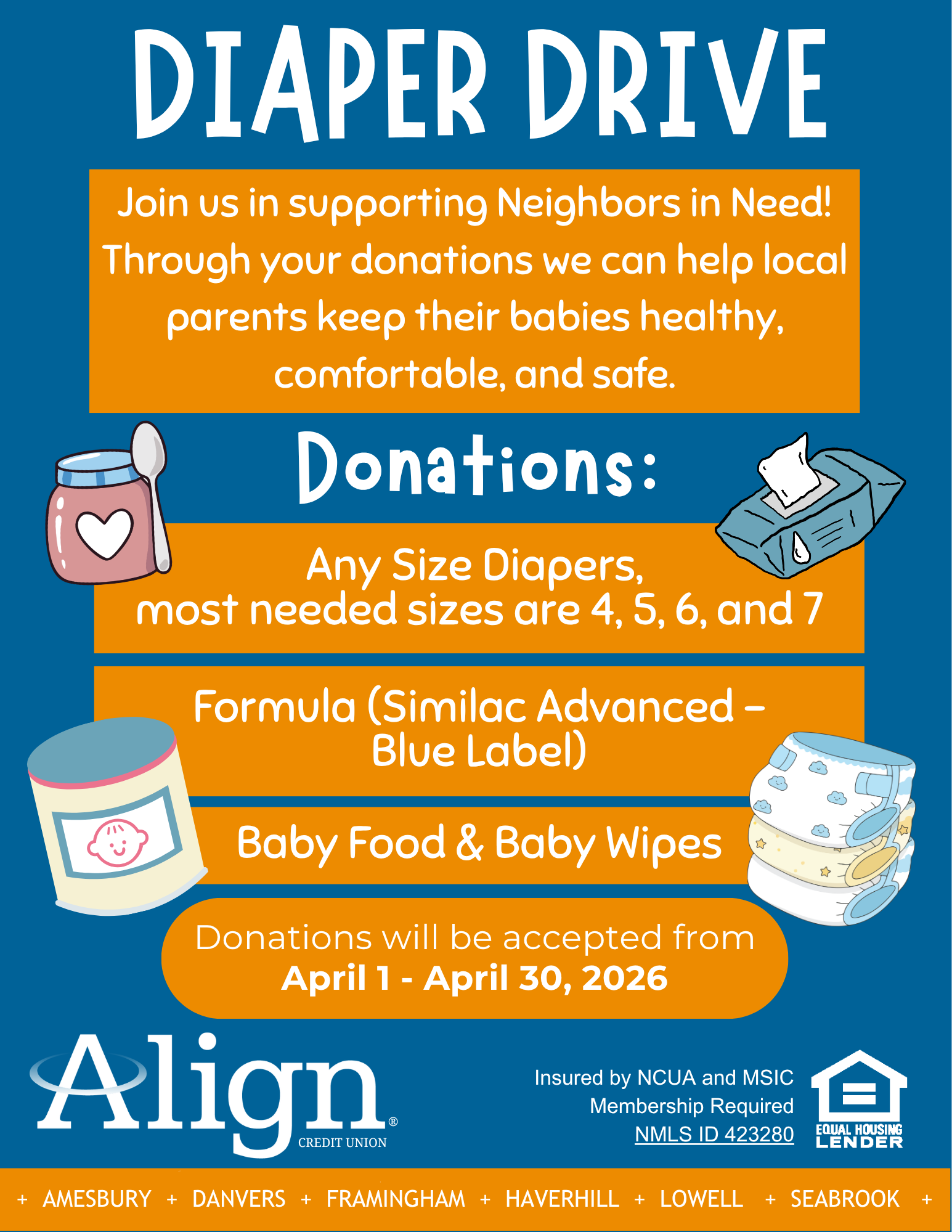 Donations will be accepted through the month of April and can be brought to any of the Align Branches.